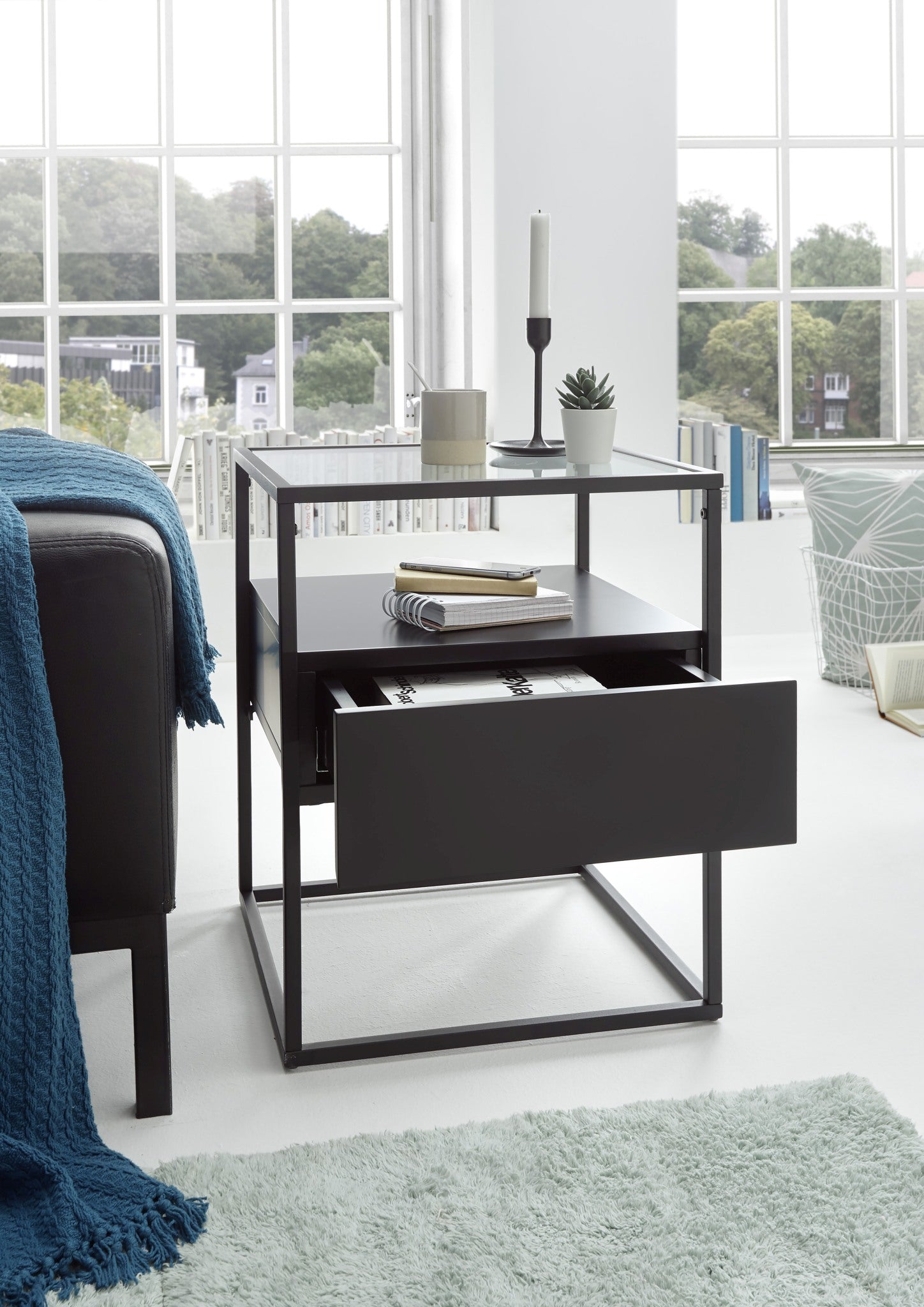 - Gestell: Metall schwarz pulverbeschichtet